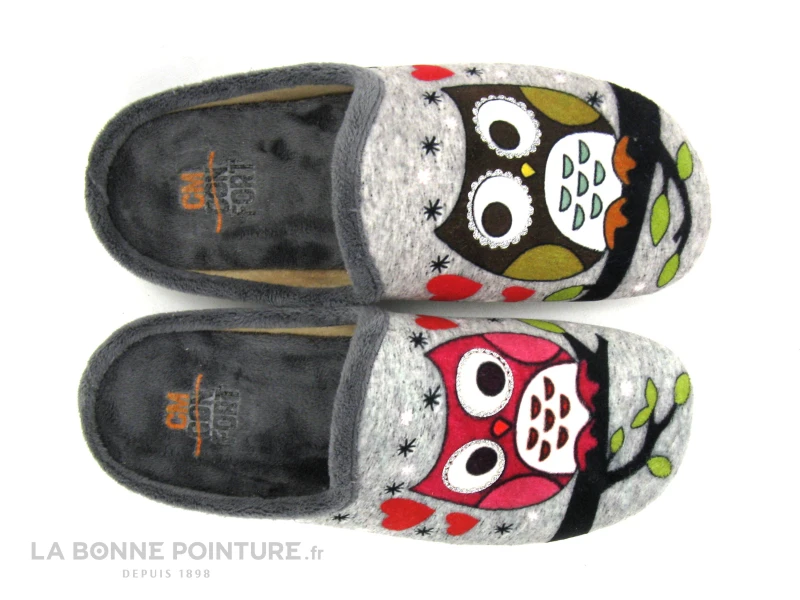 CM Confort 66700437 Gris – Hibou Rose – Hibou Marron – Pantoufle Mule
