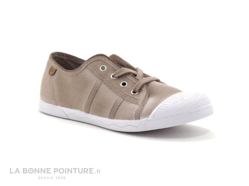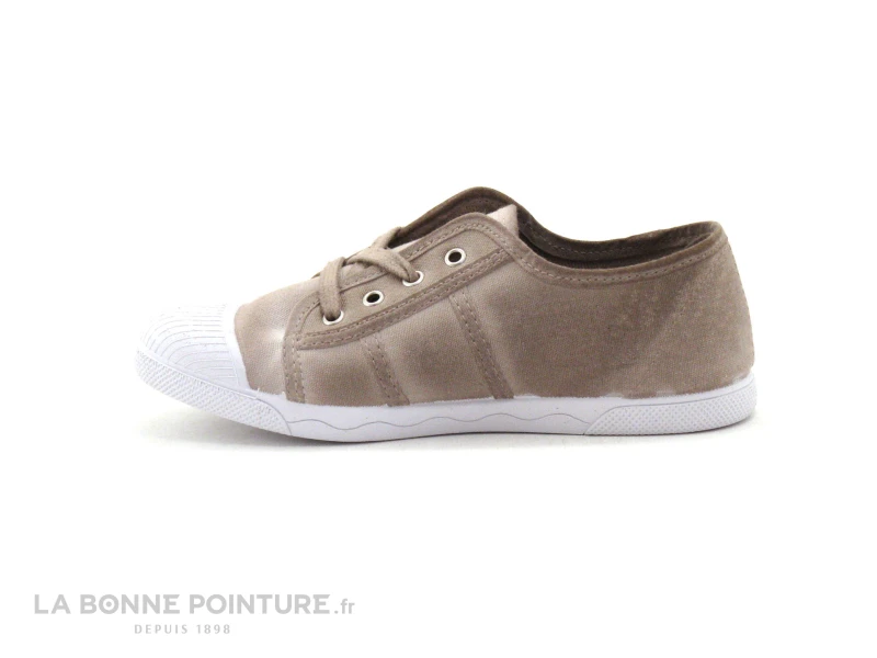 Cette jolie tennis fille est en toile beige nuancĂ©e, avec un lacet du mĂȘme ton qui permet de fermer la chaussure.