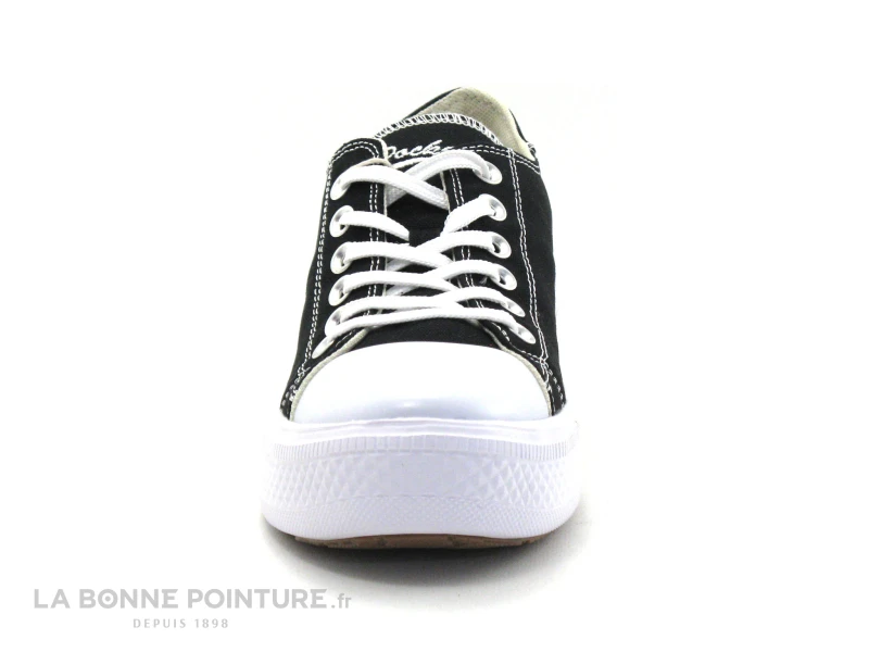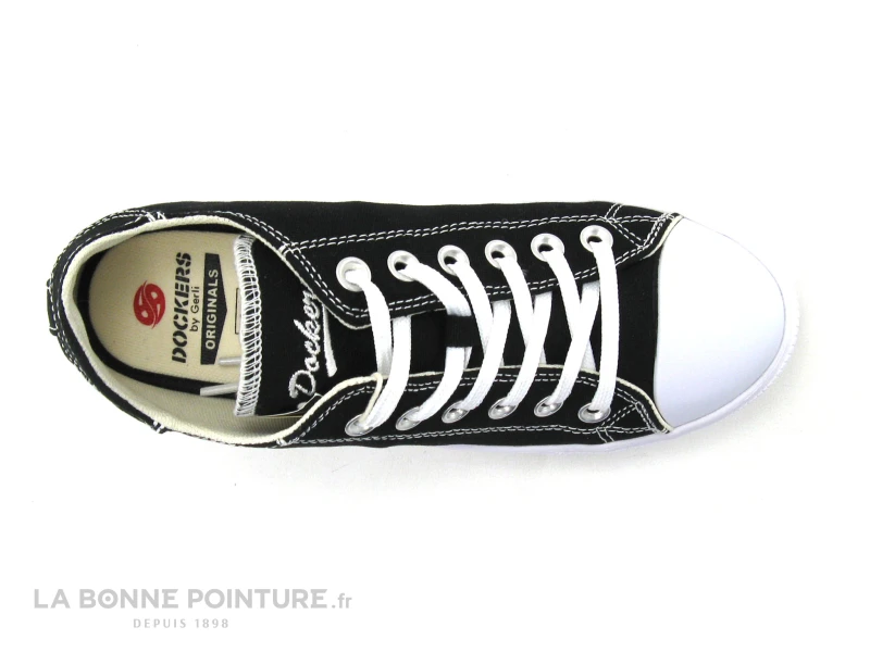 Cette basket Femme – Fille à semelle épaisse Dockers est en toile noire avec un renfort de protection sur la pointe.