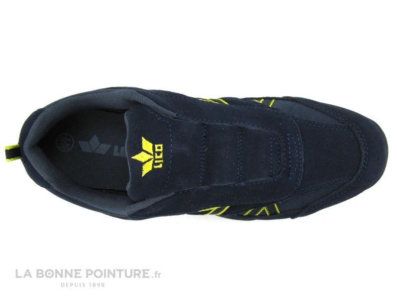Cette basket slip on Homme Lico Ensio 540545 est principalement en cuir velouté bleu marine, avec des parties en nylon sur les côtés et à l’arrière et un peu de jaune.