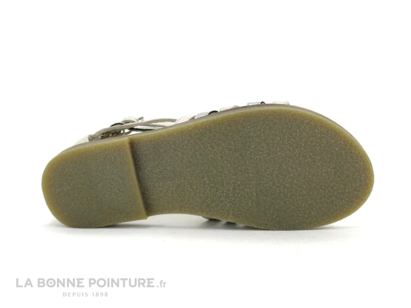 Ce nu-pieds montant fille Lilybellule est tout en cuir, aux tons de beige, de gris et d’argent.