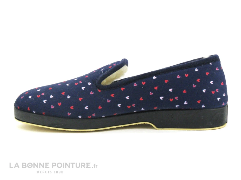 Saez CADETE Bleu Marine – Coeurs Roses – Charentaise Femme