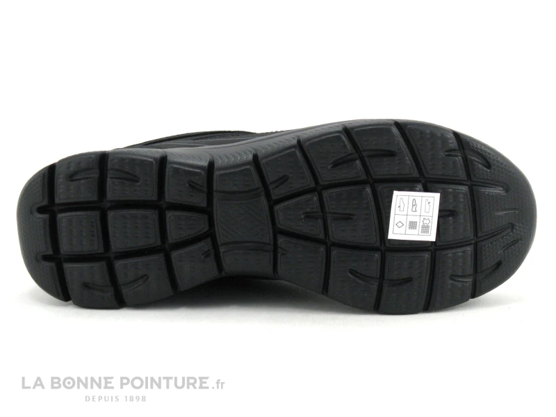 La basket Femme noire Skechers Summit possÚde un intérieur en tissu noir, avec semelle Skechers memory Foam⹠confortablement matelassée.