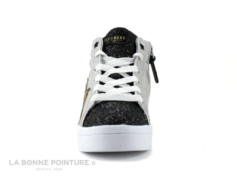Les baskets montantes fille argent et noir pailleté Skechers Hi Lite Dazzle drip, des sneakers originales et top tendance pour les filles au très bon rapport qualité / prix !